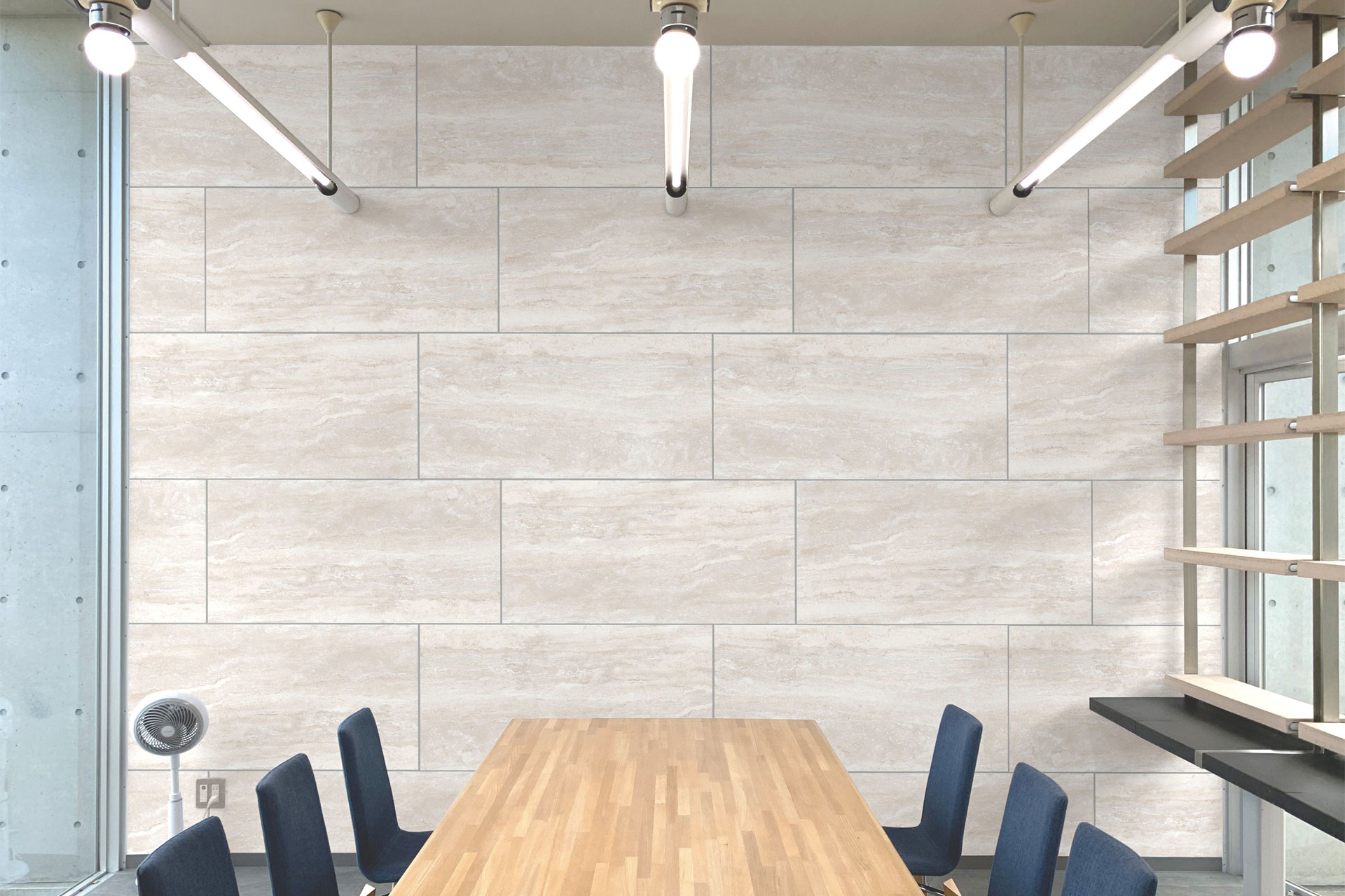 グラムール(スリムウォール)は、厚さ3.0mm〜6.0mmの超薄型・軽量設計を実現したミドルサイズタイル(1200×600)。